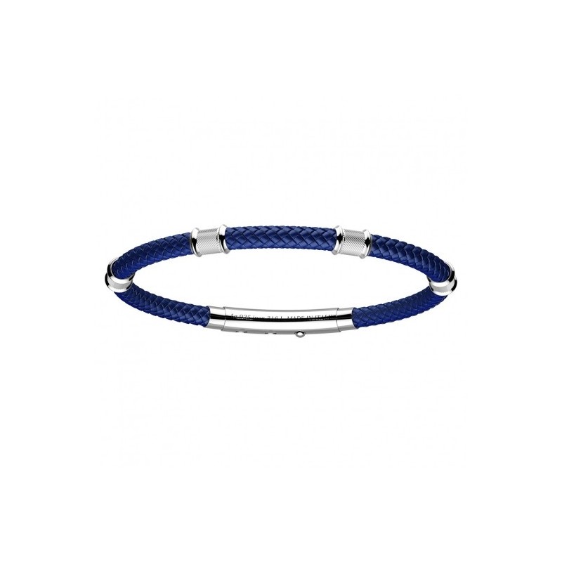 Bracciale da uomo in kevlar colorato blu con inserti in argento.