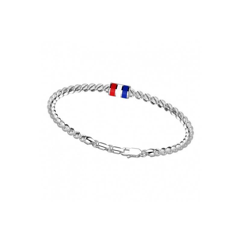 Bracciale in argento 925 con sfere decorate. L'elemento centrale samaltato a mano raffigura una bandiera nautica.