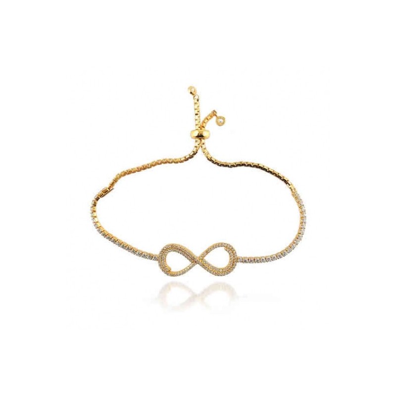 Bracciale regolabile in argento giallo e pietre swarovski a pavè con simbolo infinito Maglia 2,1 mm semirigido con pietre incastonate e infinito 30 x 12,8 mm Regolabine con saliscendi Argento 925% Garanzia del produttore