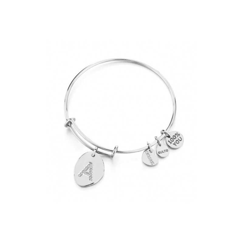 Bracciale in acciaio silver con ciondolo lettera e cristalli
