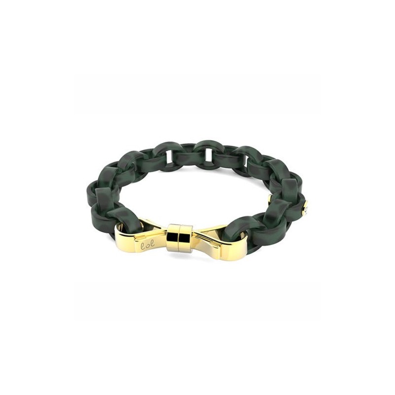 Bracciale LOL JEWELS JUNGLE Donna - A-30 Tipo Articolo: Bracciale Marca: LOL JEWELS SKU: A-30 Collezione: JUNGLE Donna Lunghezza cm: 19 + 2 CM Colore Bracciale: verde chisura dorata a calamita