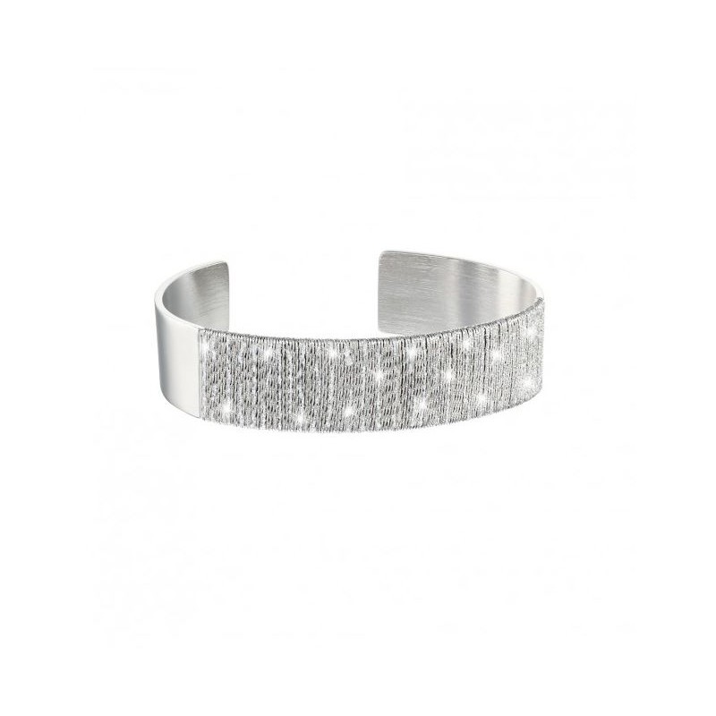 Bracciale Bangle small Stroili collezione Obsession in ottone rodiato con glitter bianchi misura regolabile
