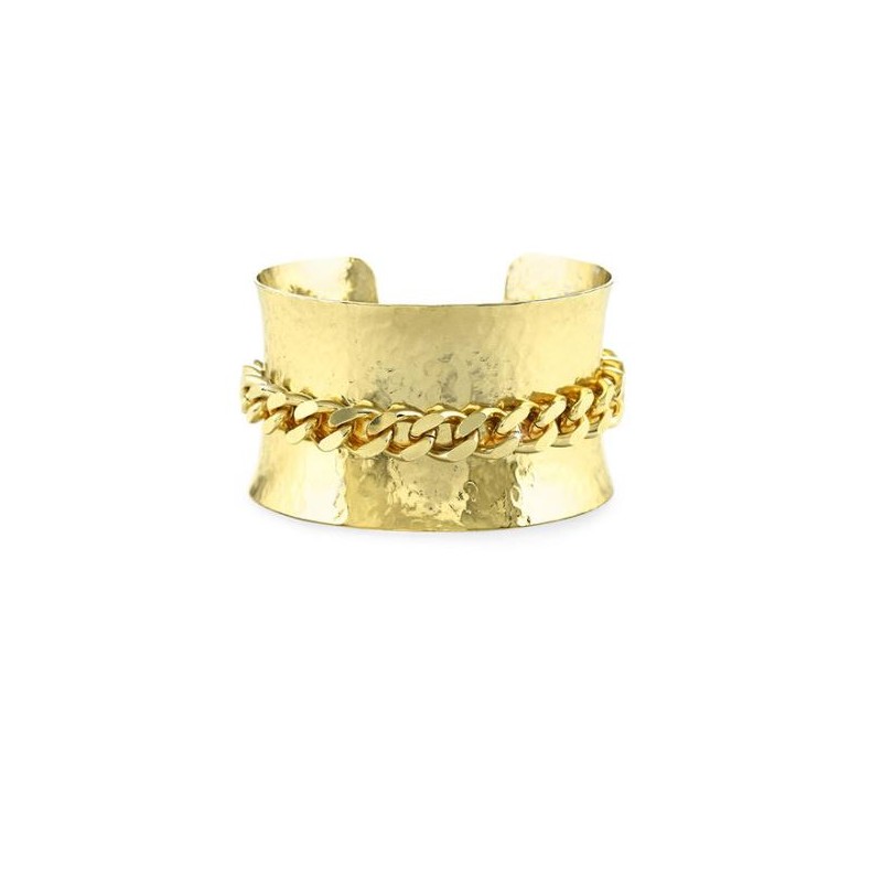Bracciale rigido in bronzo dorato ,a schiava impreziosito da centrale maglia grumetta.