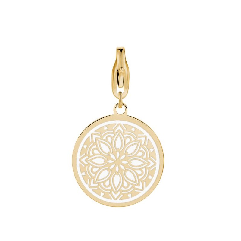 Charm S'agapò collezione HAPPY Mystic: Mandala Per aiutare la meditazione Charm in acciaio 316L e smalto bianco