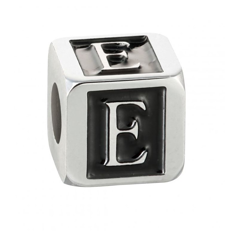 Elemento in acciaio e smalto Stroili "lettera E" per bracciale componibile collezione Man Code