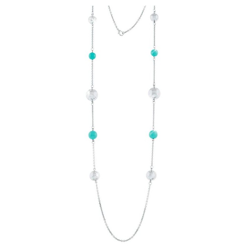 Collana Unoaerre lunga con sfere in bronzo lucide e smaltate di colore silver e turchese