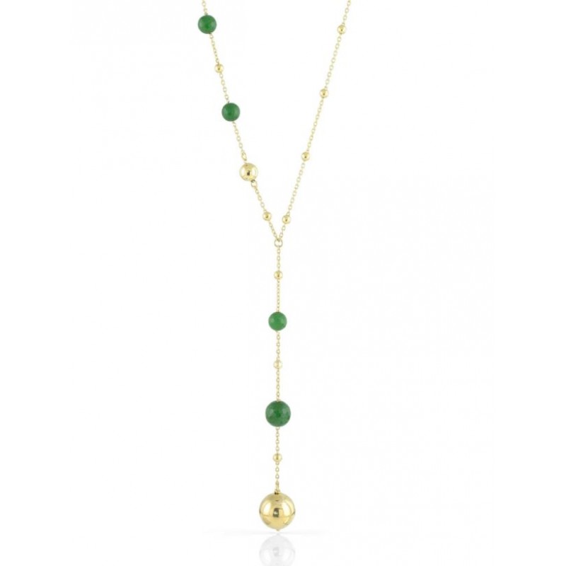 Collana lunga con sfere in bronzo lucide e in agata verde