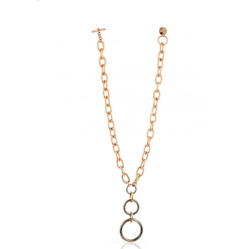Collana Unoaerre in bronzo bicolore rosè e nero impreziosita da centrale con cerchi