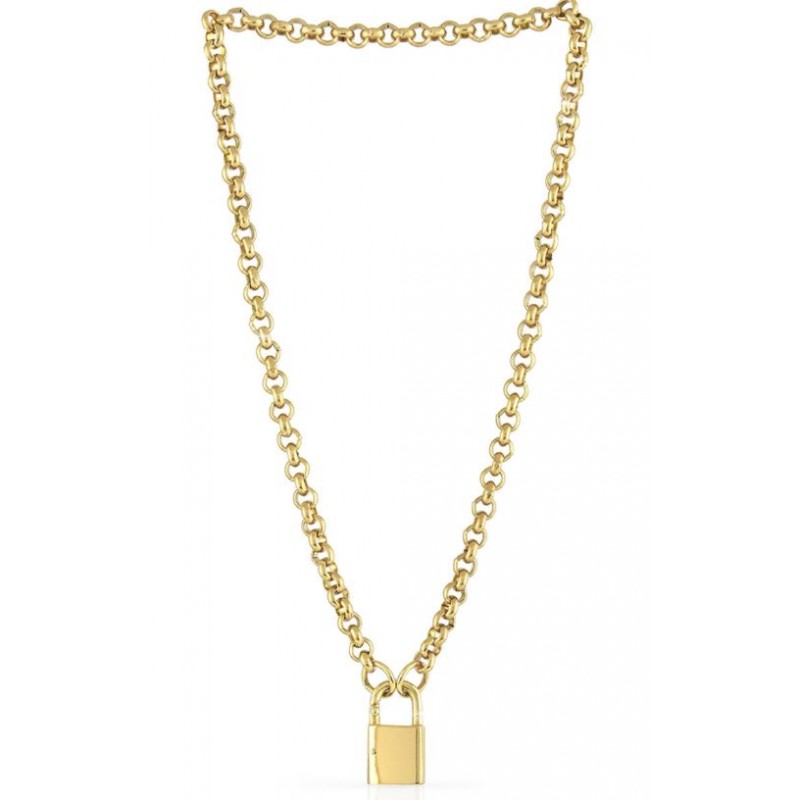 Collana di catena rolò in bronzo dorato impreziosita da chiusura a lucchetto.