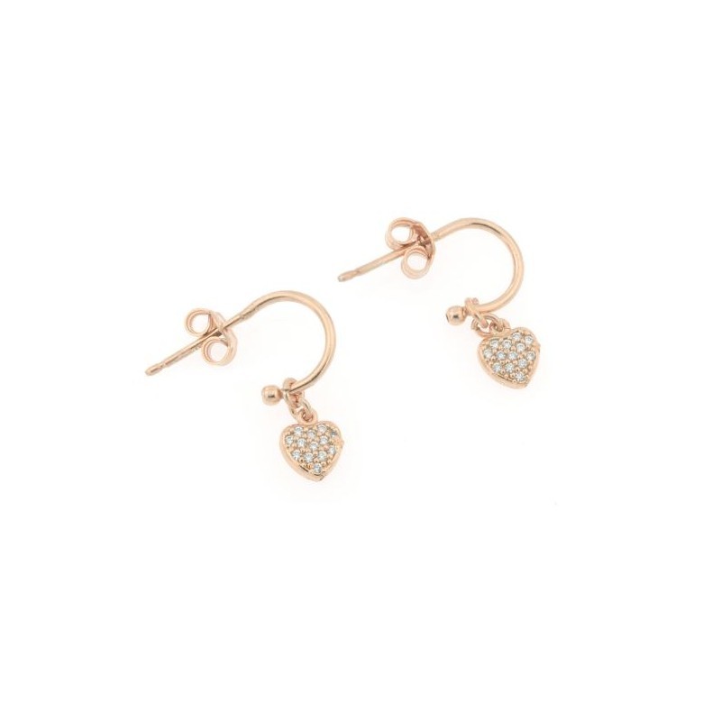 Cerchietti micro in argento 925 bagnato in oro rosa con cuoricini di zirconi.