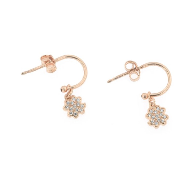 Orecchini a Cerchietti micro in argento 925 bagnato in oro rosa con Quadrifogli di zirconi.