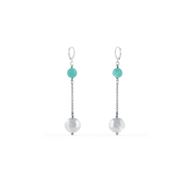 Orecchini Unoaerre pendenti con sfere in bronzo lucide e smaltate di colore silver e turchese