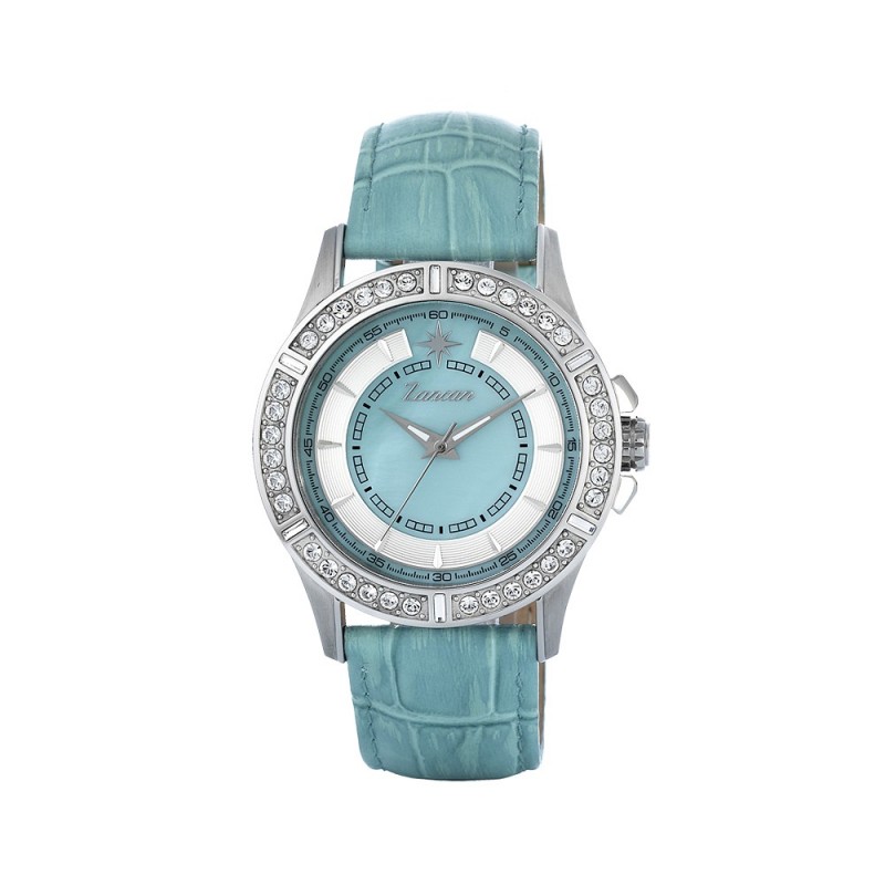 Orologio Zancan Lady, movimento quarzo, cassa in acciaio con zirconi e cinturino in pelle turchese, impermeabilità 100 m