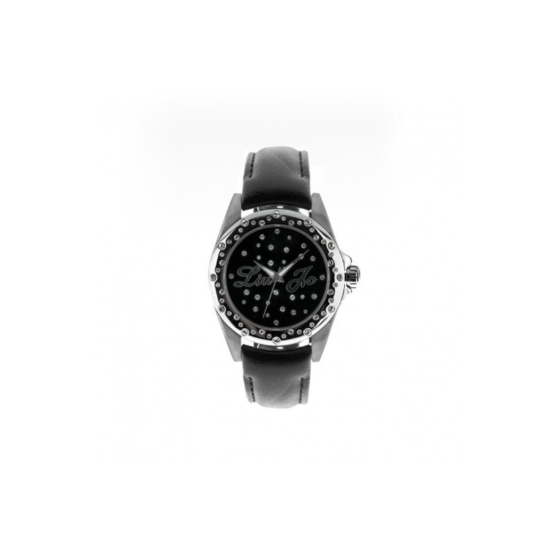Cassa in acciaio 316L diametro 38 mm. Fondo in acciaio serrato a vite. Vetro minerale. Corona di regolazione in acciaio serrata a pressione. Ghiera in acciaio con pietre colorate. Quadrante nero. Indici con cristalli bianchi. Lancette in acciaio. Cinturino in pelle stampata coccodrillo in tinta con fibbia ad ardiglione in acciaio. W.R. 5 atm.
