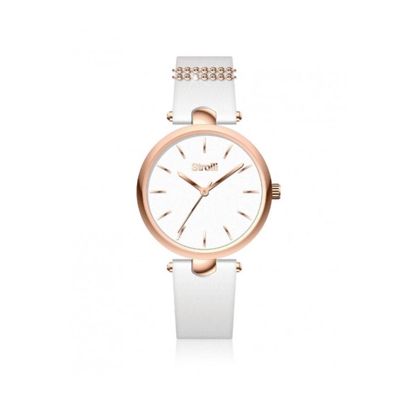 Orologio Stroili collezione Pigalle analogico solo tempo movimento al quarzo con cassa di diam. 32 mm in acciaio rose gold cinturino in pelle bianco quadrante bianco resistente all'acqua fino a 3 ATM