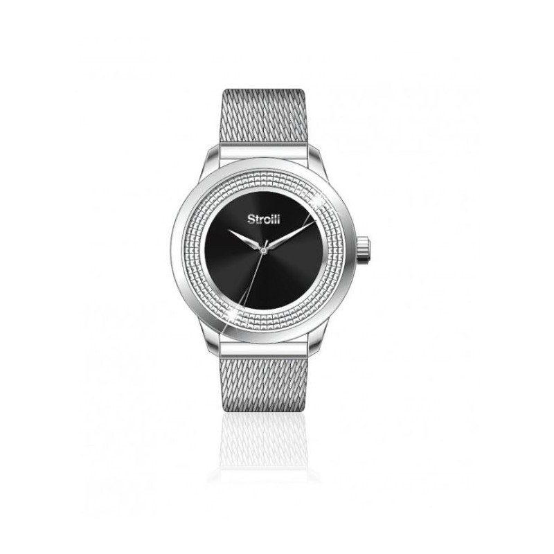 Orologio Stroili collezione London analogico solo tempo movimento al quarzo con cassa di diam. 32 mm e cinturino in acciaio silver quadrante nero diamantato silver resistente all'acqua fino a 3 ATM