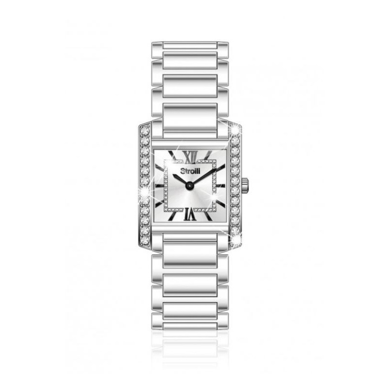 Orologio Stroili collezione Westminster analogico solo tempo movimento al quarzo cassa dimensioni 20x28 con cristalli bianchi e cinturino in acciao silver quadrante bianco con cristalli bianchi restistente all'acqua fino a 3 ATM