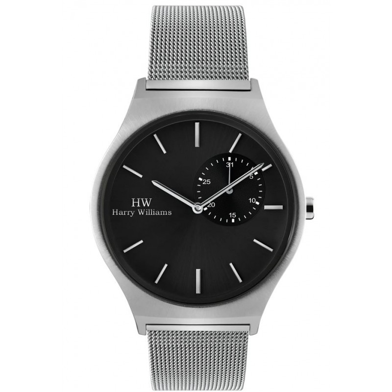 Orologio solo tempo con fasi lunare Di Harry Williams Collezione BRIXTON con Cassa In Acciaio 316/L Diametro 41 mm, Quadrante colore nero Cinturino acciaio Resistenza All'Acqua Di 3 Atm.
