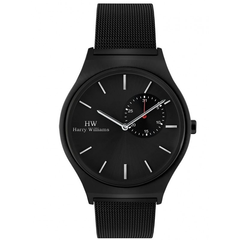 Orologio solo tempo Di Harry Williams Collezione BRIXTON con Cassa In Acciaio 316/L laminato nero Diametro 41 mm, Quadrante colore nero Cinturino acciaio nero Resistenza All'Acqua Di 3 Atm.