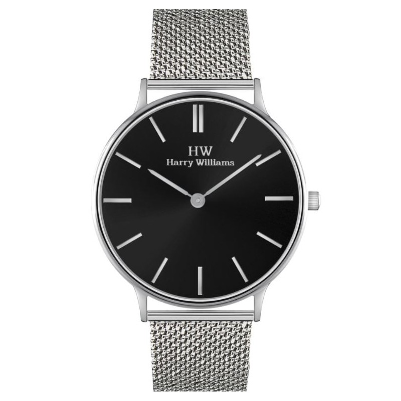Orologio solo tempo da donna Di Harry Williams Collezione SOHO ,con Cassa In Acciaio 316/L Diametro 32 mm, Quadrante colore nero Cinturino acciaio martellato Resistenza All'Acqua Di 3 Atm